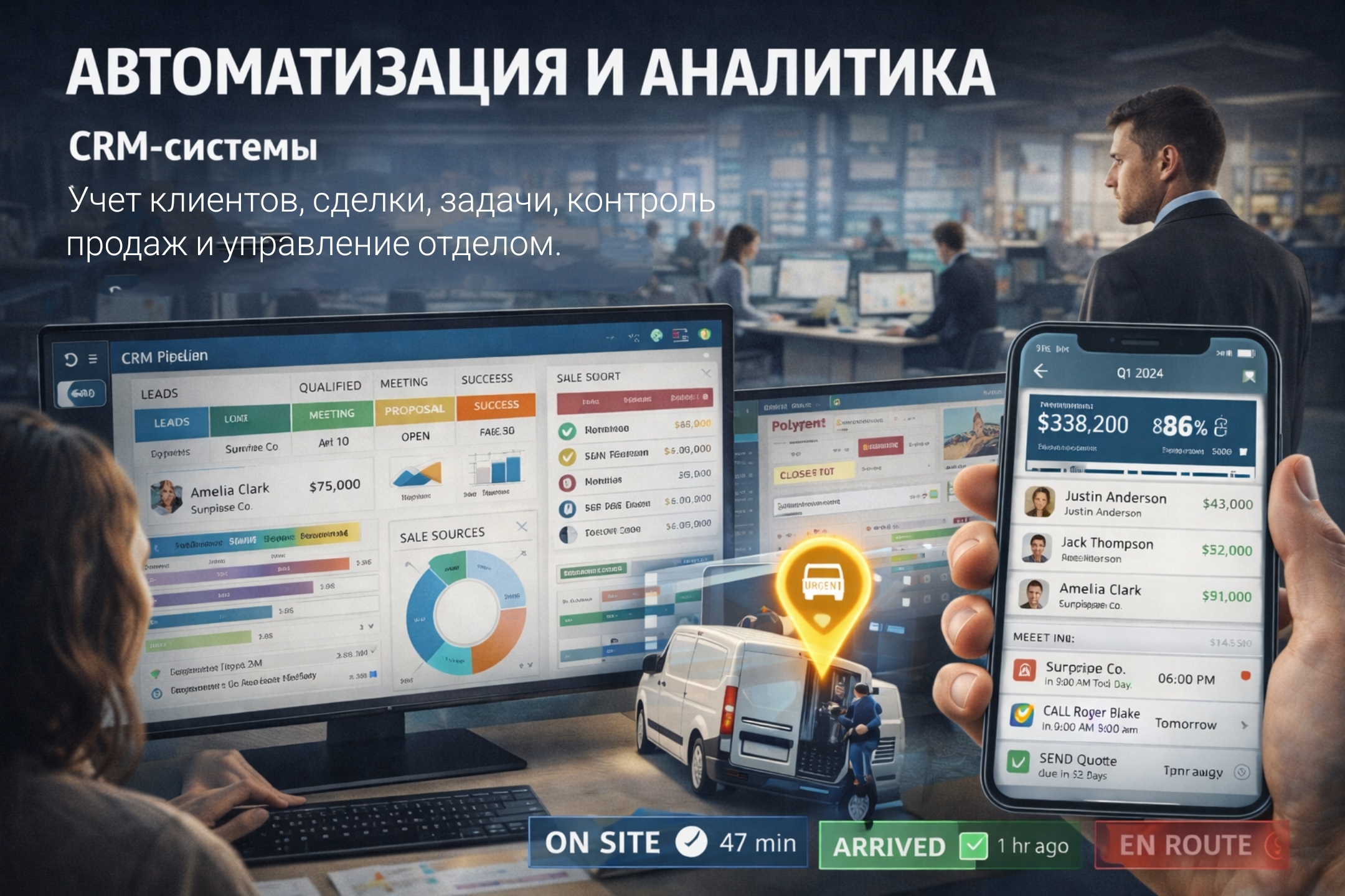 Продажи, логистика, задачи — всё отражено в цифрах, а не в разговорах.
