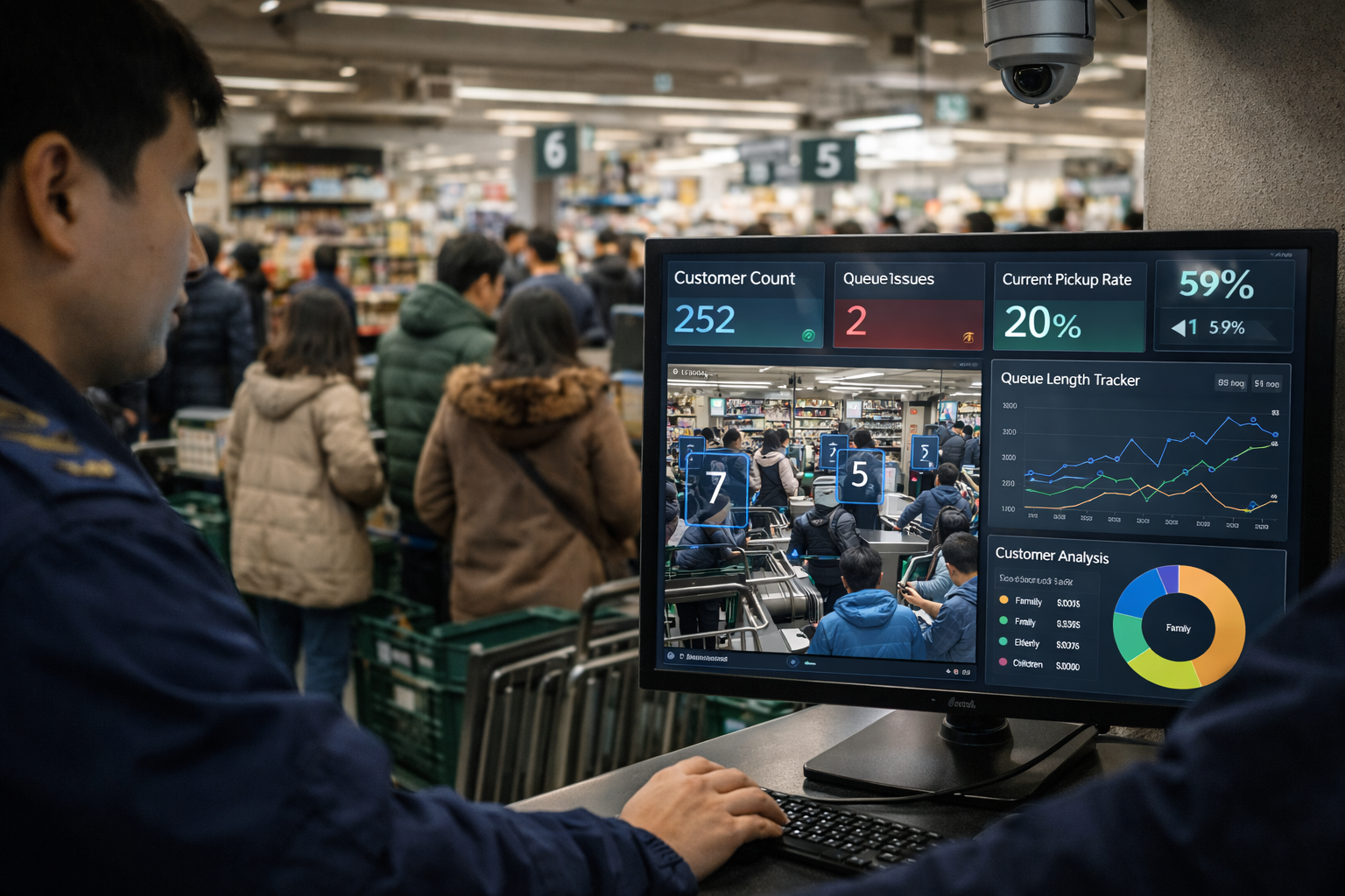 Подсчёт клиентов, контроль очередей, анализ поведения покупателей.