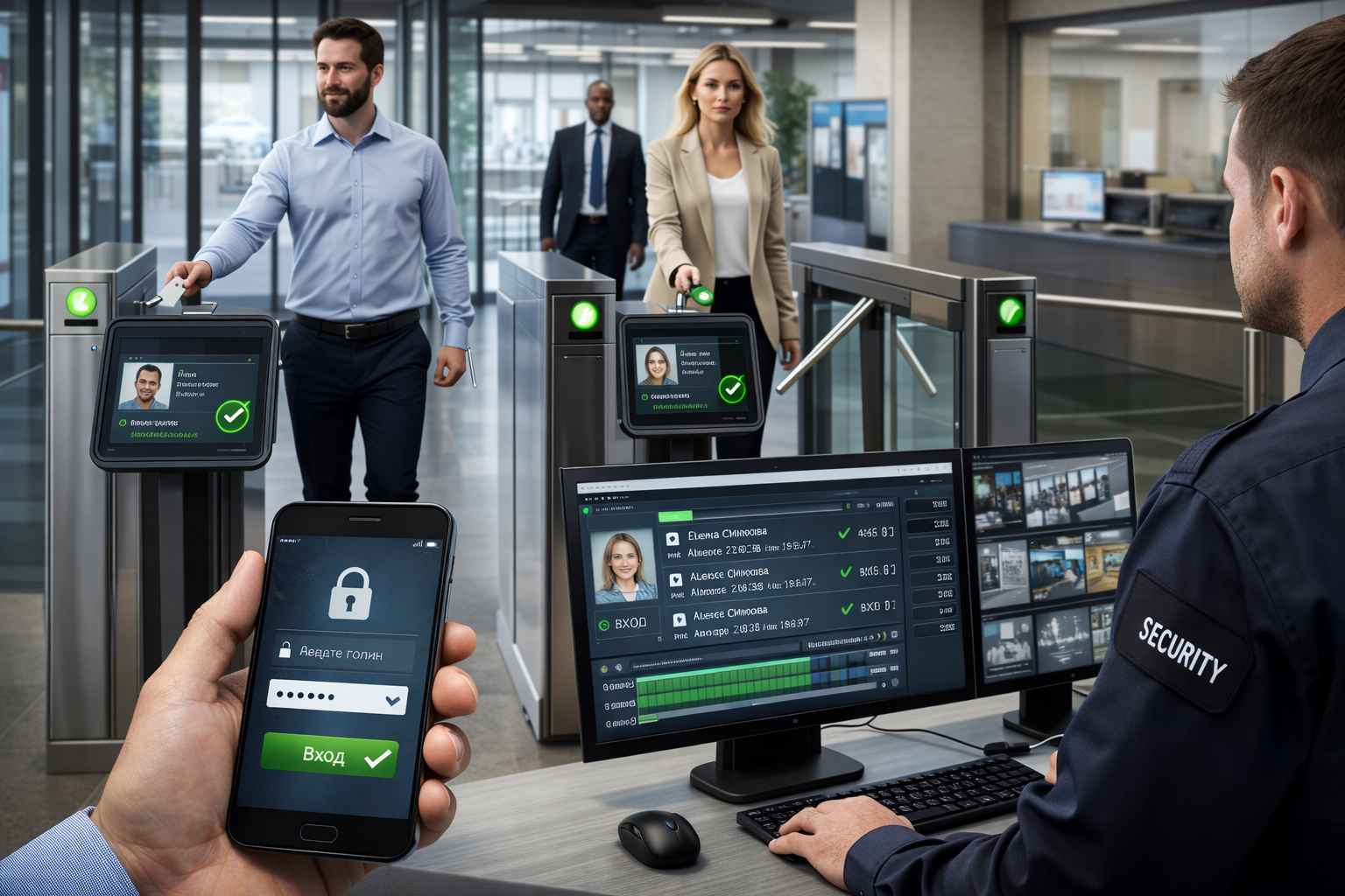 Видеонаблюдение → доступ → сигнализация → отчёты → всё в одной системе.