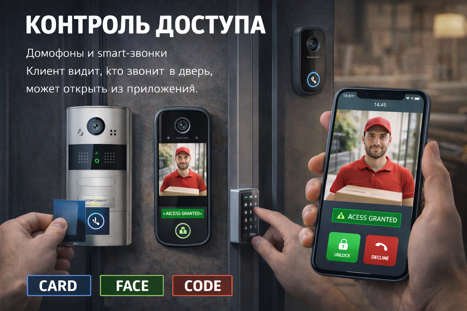Ворота, турникеты, замки, домофоны — всё объединено в единую систему.